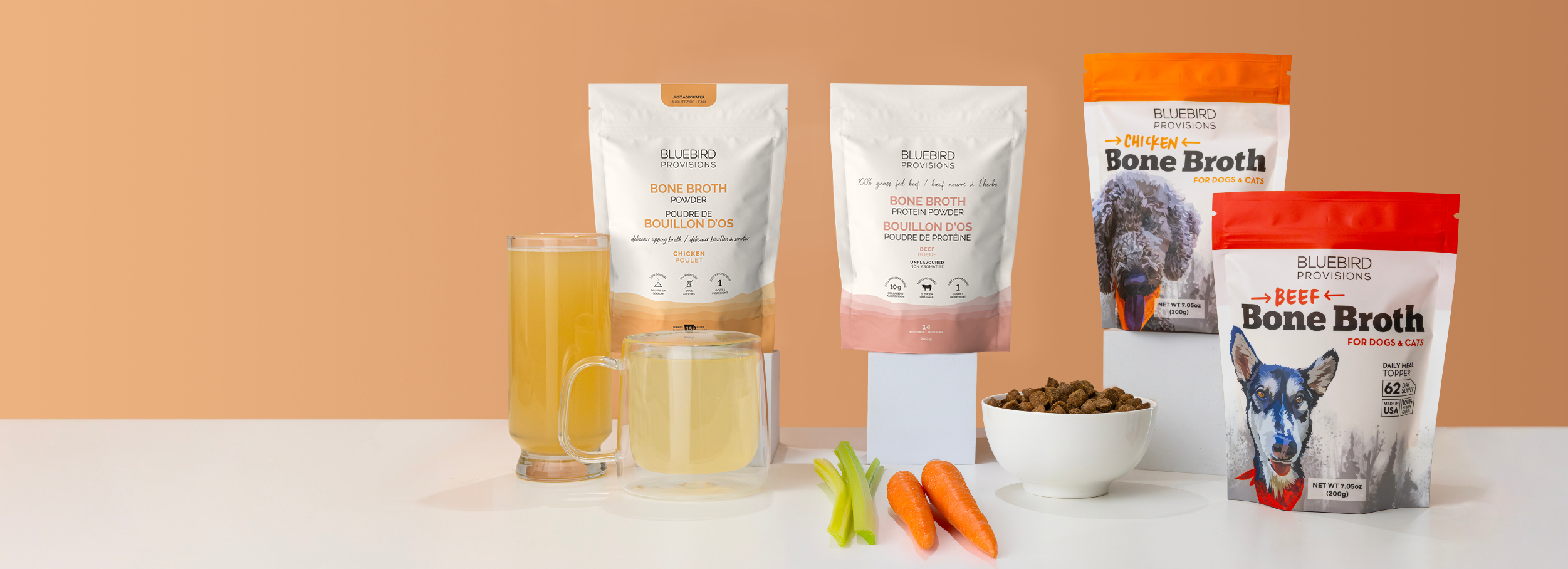 We made bone broth for dogs to help picky eaters get the nutrition they need for gut health, proper digestion, shiny coats and supple joints.